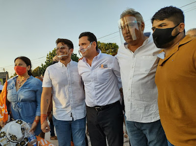 Entre porras, muestras de cariño y afecto, fue recibido el candidato Locho Morán en el jardín de la Colonia San José, en el municipio de Tecomán, siendo acompañado por el empresario agricultor Roberto Verduzco, los ciudadanos Emiliano González, Maricela García, Paco Cuevas y Paco Espinoza.